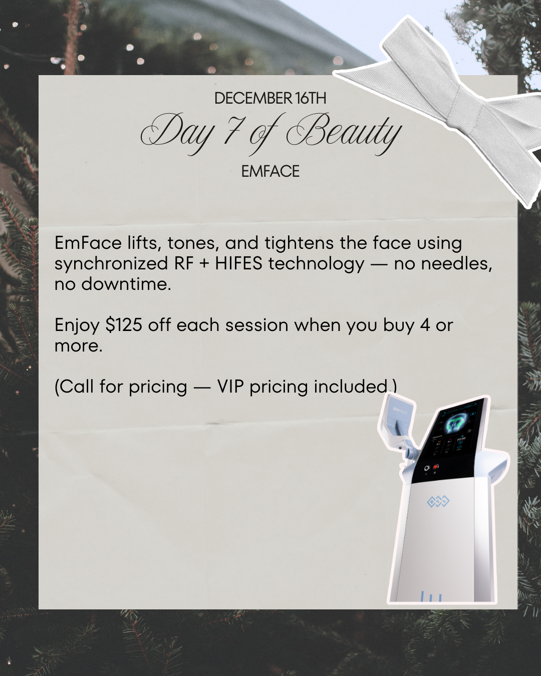 ✨ Call us for pricing and to reserve your EMFACE package! -